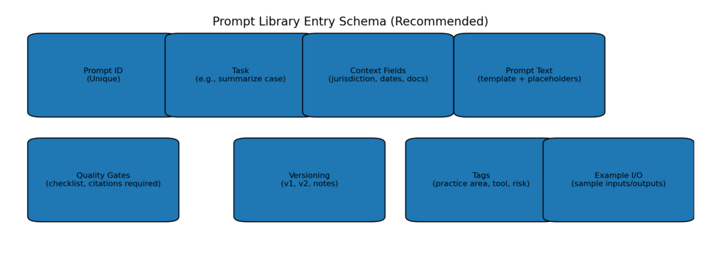 Shared prompt libraries improve consistency and reduce risk. Pair prompts with verification checklists and approved tool guidance.