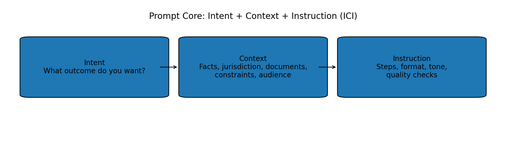 The simplest way to improve prompt quality is to be explicit. The ICI framework gives you a repeatable structure for legal prompting.